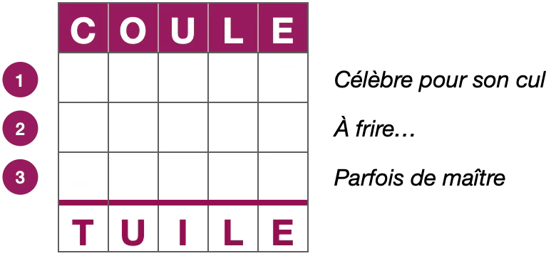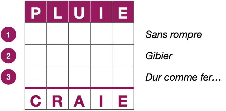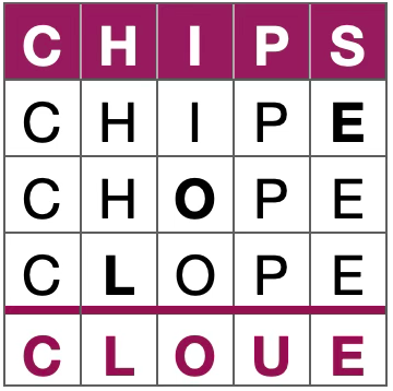 Voici une variante d’un célèbre jeu de lettres. Votre mission consiste à passer d’un mot à l’autre en un nombre défini d’étapes au cours desquelles vous n’êtes autorisé(e) à modifier qu’une seule lettre.