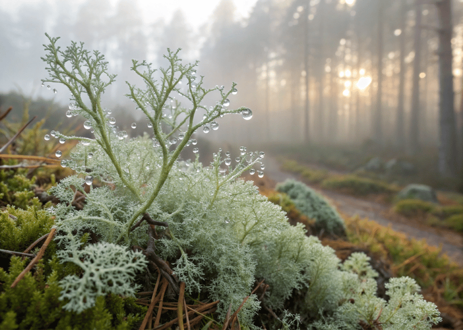 Ni plantes ni champignons, les lichens sont le fruit d’une alliance improbable entre deux espèces : un champignon et une algue microscopique (ou une cyanobactérie). Ce duo forme un organisme unique, qui est le fruit d’une coopération durable. Le champignon protège l’algue et retient l’eau, tandis que l’algue, grâce à ses capacités de photosynthèse, fournit les sucres nécessaires à la survie du lichen. Ce mariage millénaire illustre l’une des plus belles formes d’entraide du monde vivant, que les botaniste qualifie de « symbiose ». Les lichens peuplent les milieux les plus inhospitaliers – falaises, troncs, toits, déserts glacés ou brûlants –, là où presque rien d’autre ne pousse. Pionniers du vivant, ils participent à l’érosion des roches, préparant lentement un sol fertile où d’autres formes de vie pourront s’installer. Certains lichens peuvent vivre plusieurs siècles, supportant des conditions extrêmes de froid, de sécheresse ou de rayonnement. À l’instar des mousses, ils sont de précieux bioindicateurs : leur présence signale un air pur, tandis que leur disparition trahit la pollution. Leur croissance lente et leur extrême sensibilité en font de véritables témoins du temps. Dans leur apparente immobilité, ils témoignent que la vie, même minuscule, se nourrit d’équilibre, de coopération et de patience.